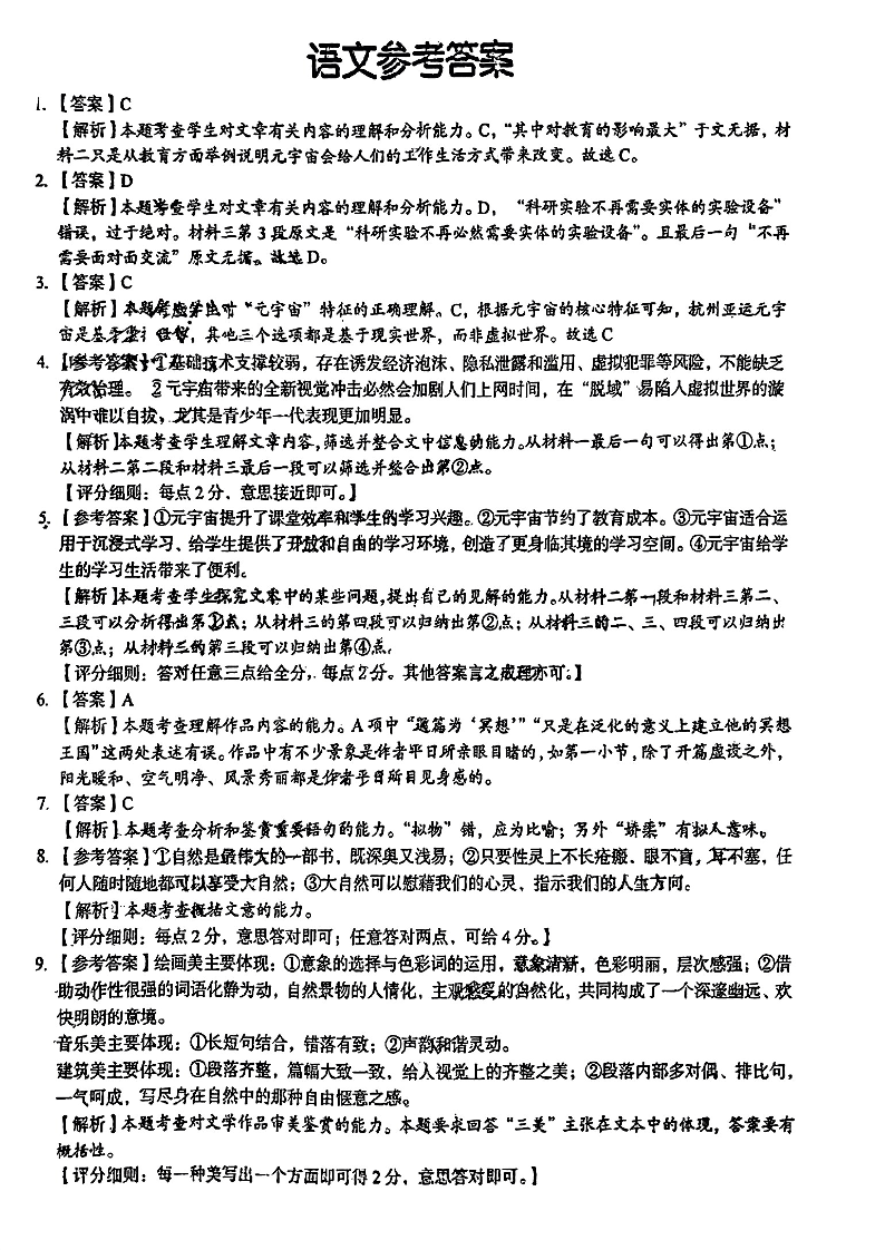 湖南省A佳教育2023-2024学年高三上学期11月联考 语文答案