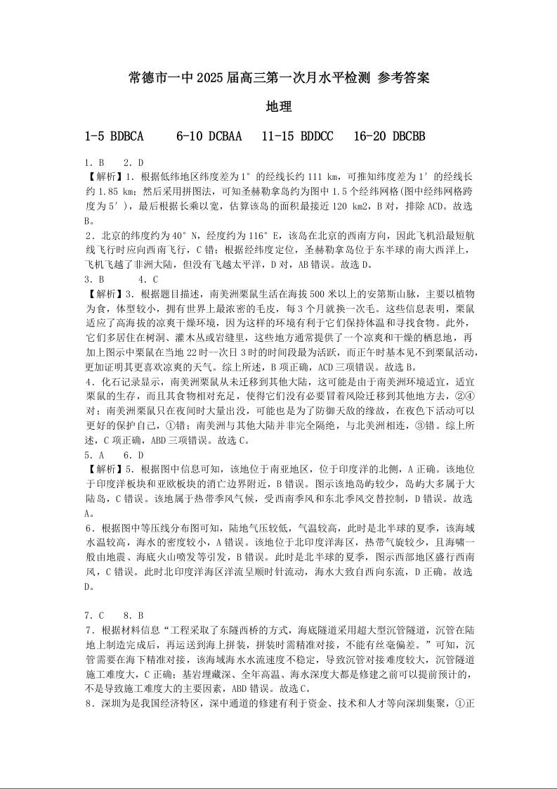 常德市一中2025届高三第一次月水平检测+地理参考答案