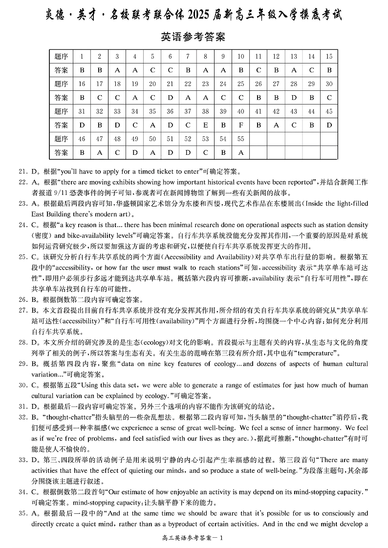 湖南省名校联合体2024-2025学年高三上学期入学摸底考试+英语答案