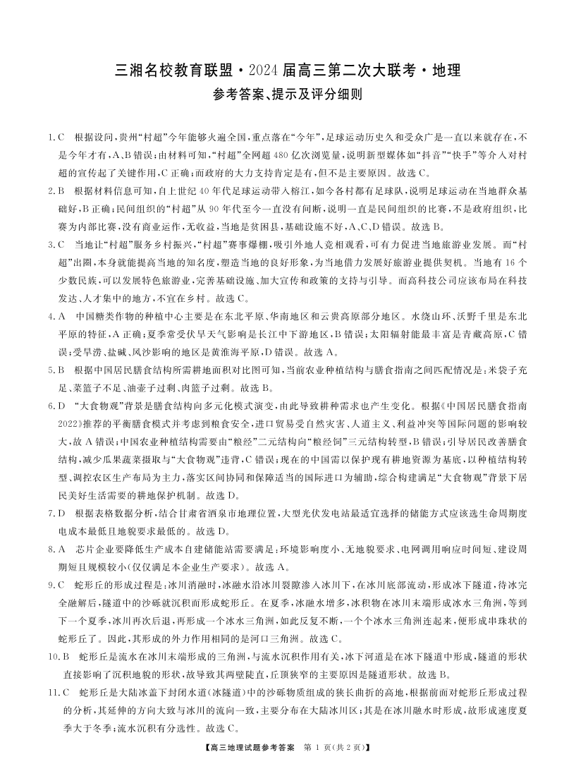 湖南省三湘名校联盟2023-2024学年高三上学期12月第二次联考 地理答案