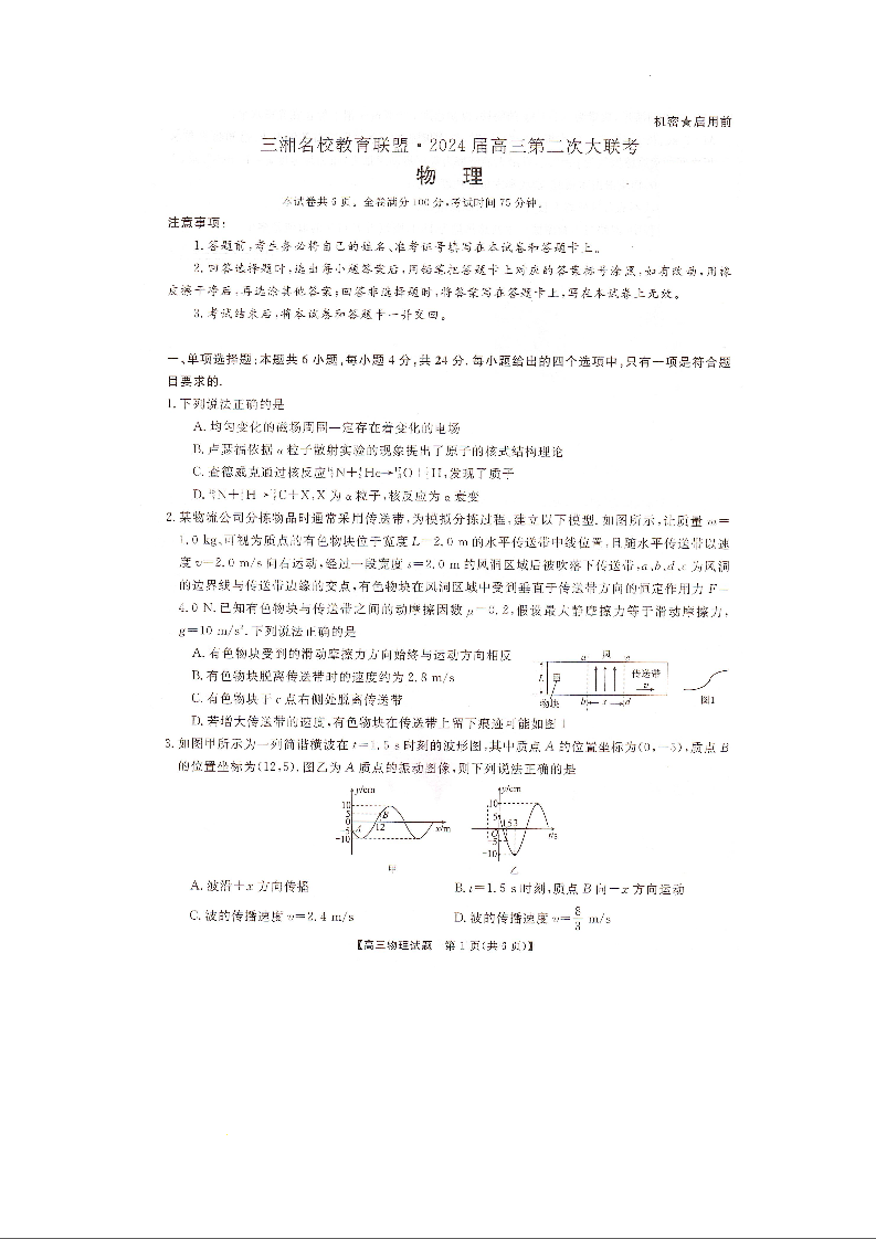 湖南省三湘名校联盟2023-2024学年高三上学期12月第二次联考 物理