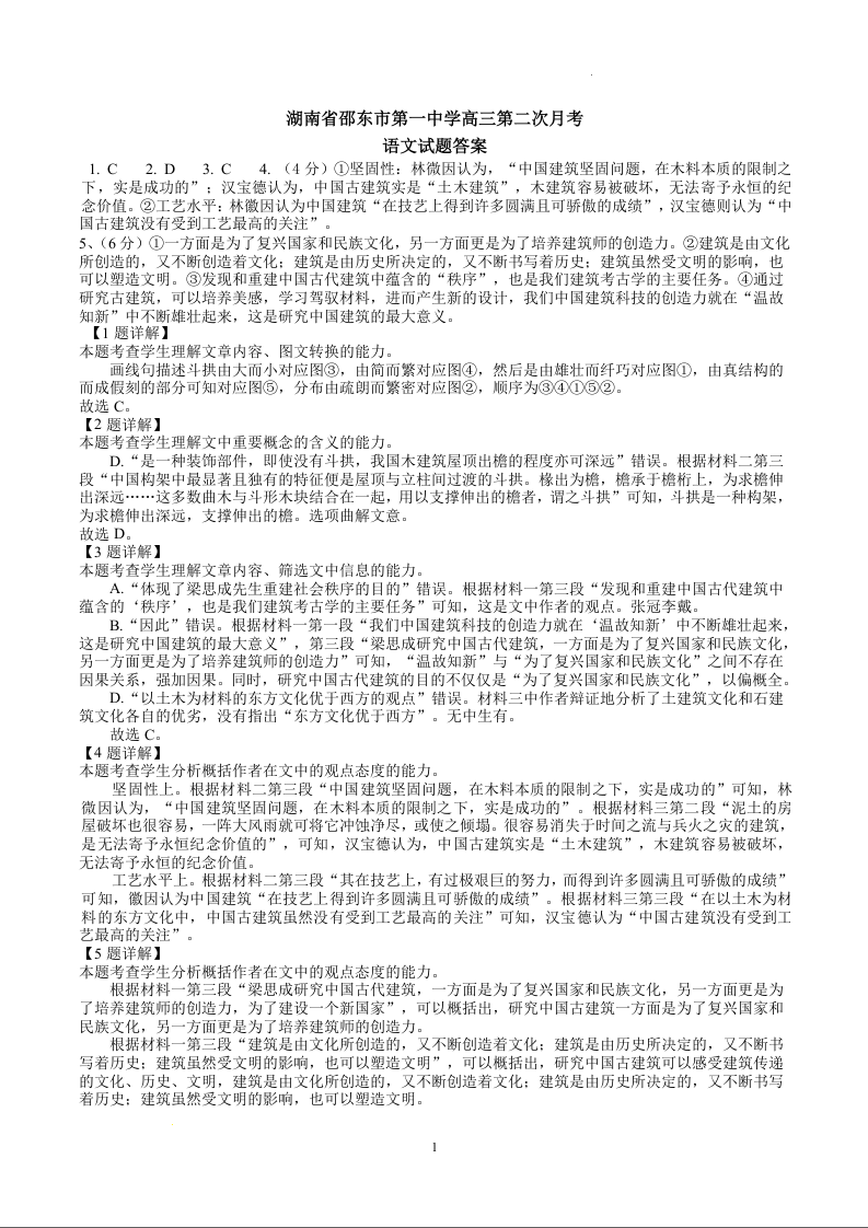 湖南省邵东市第一中学2025届高三9月第二次月考+语文答案