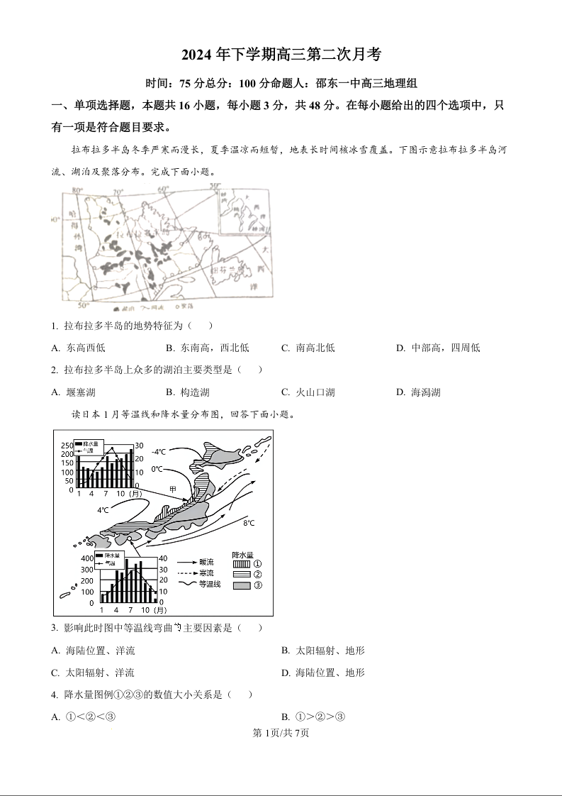湖南省邵东市第一中学2025届高三9月第二次月考+地理