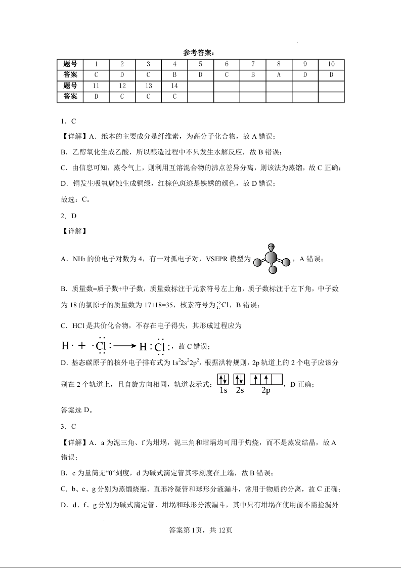 湖南省邵东市第一中学2025届高三9月第二次月考+化学答案