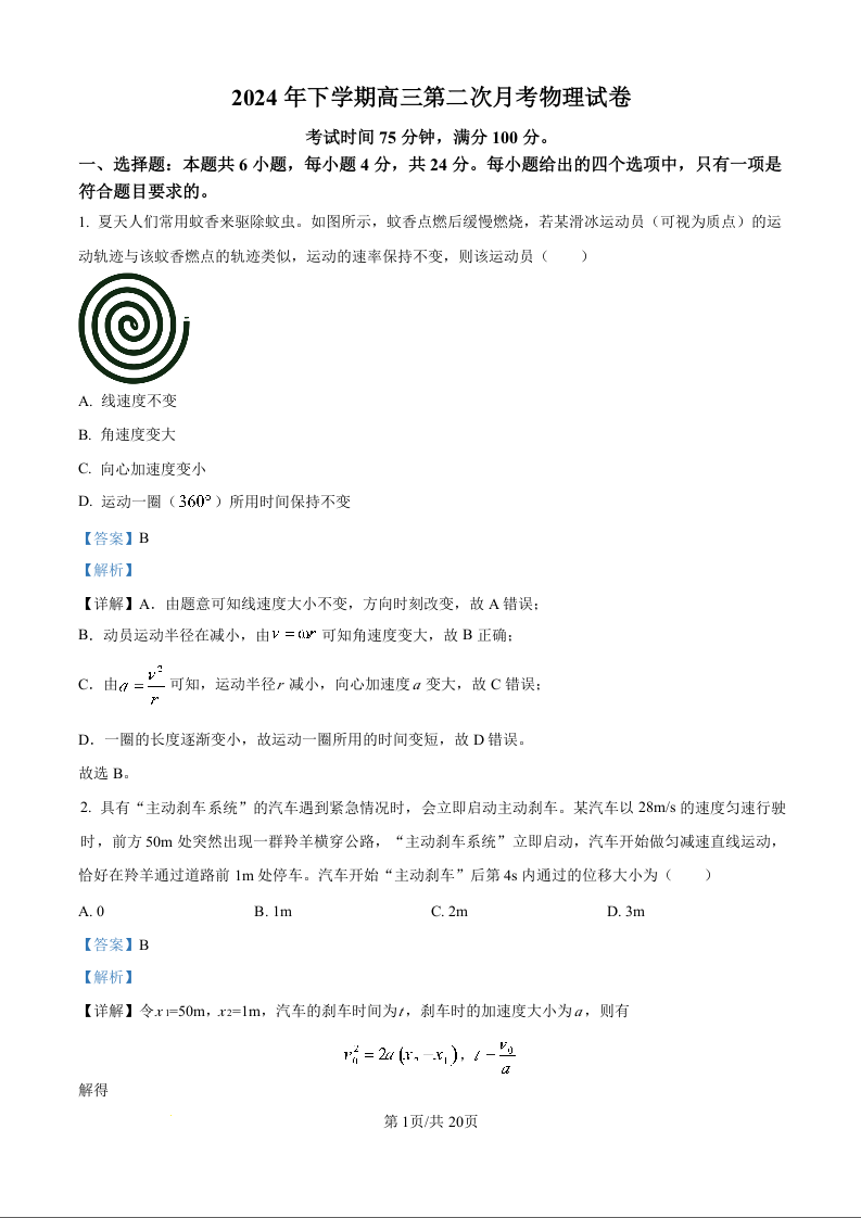 湖南省邵东市第一中学2025届高三9月第二次月考+物理答案