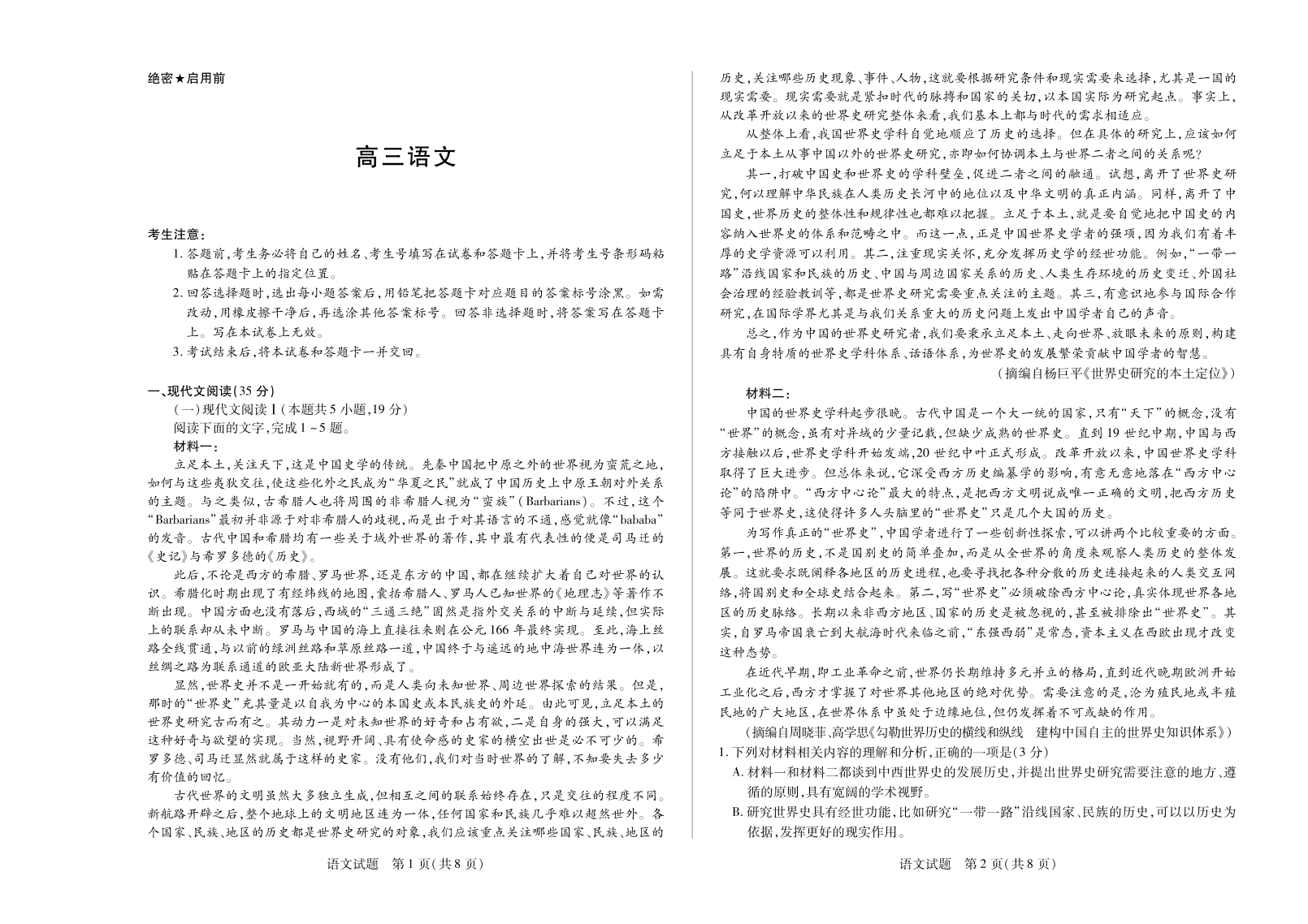 湖南省天一大联考2023-2024学年11月份高三年级三联 语文