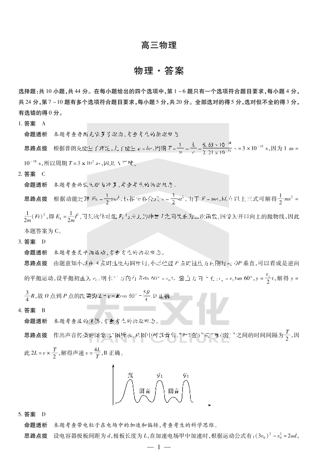 物理-湖南高三三联详细答案
