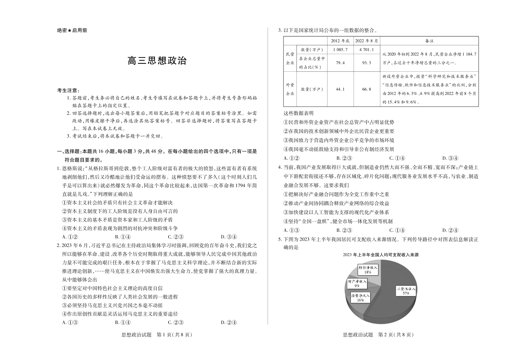湖南省天一大联考2023-2024学年11月份高三年级三联 政治
