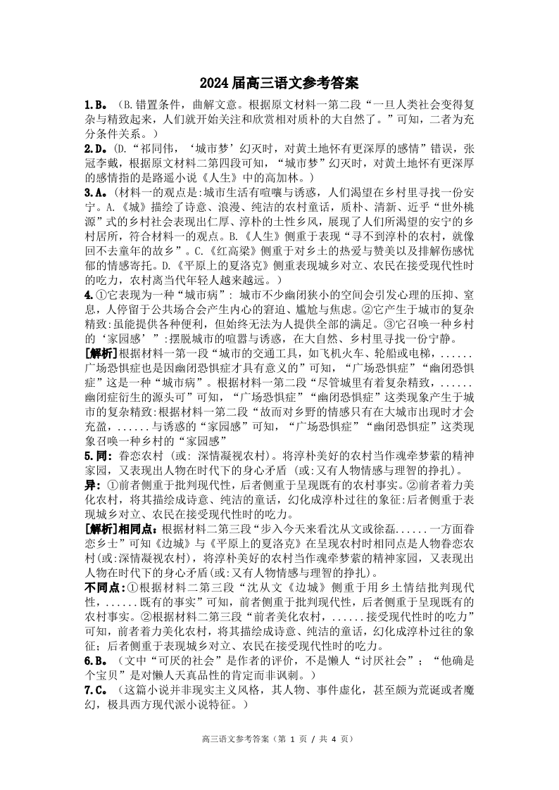 湖南省湘西州吉首市2024届高三上学期第二届中小学生教师解题大赛 语文参考答案