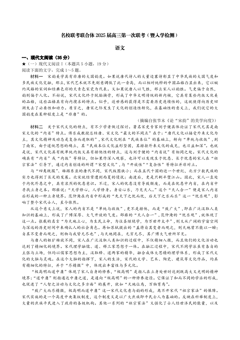 湖南省炎德英才名校联考联合体2025届高三第一次联考+语文