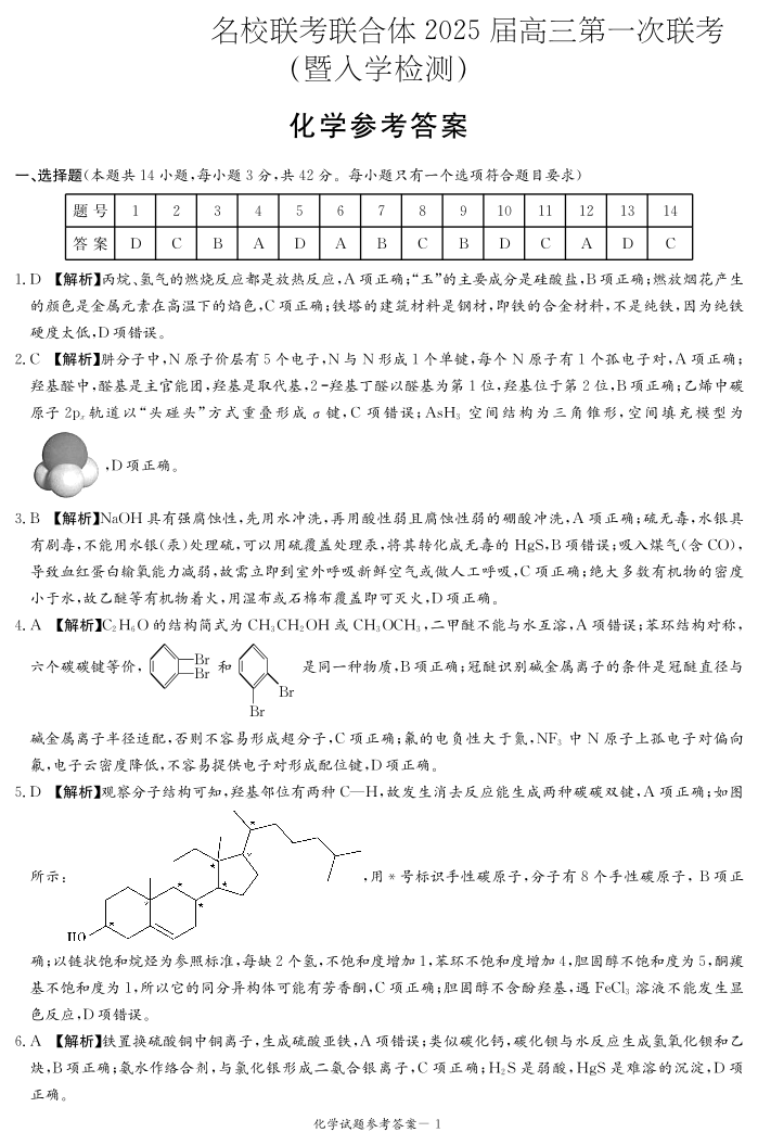 湖南省炎德英才名校联考联合体2025届高三第一次联考+化学答案