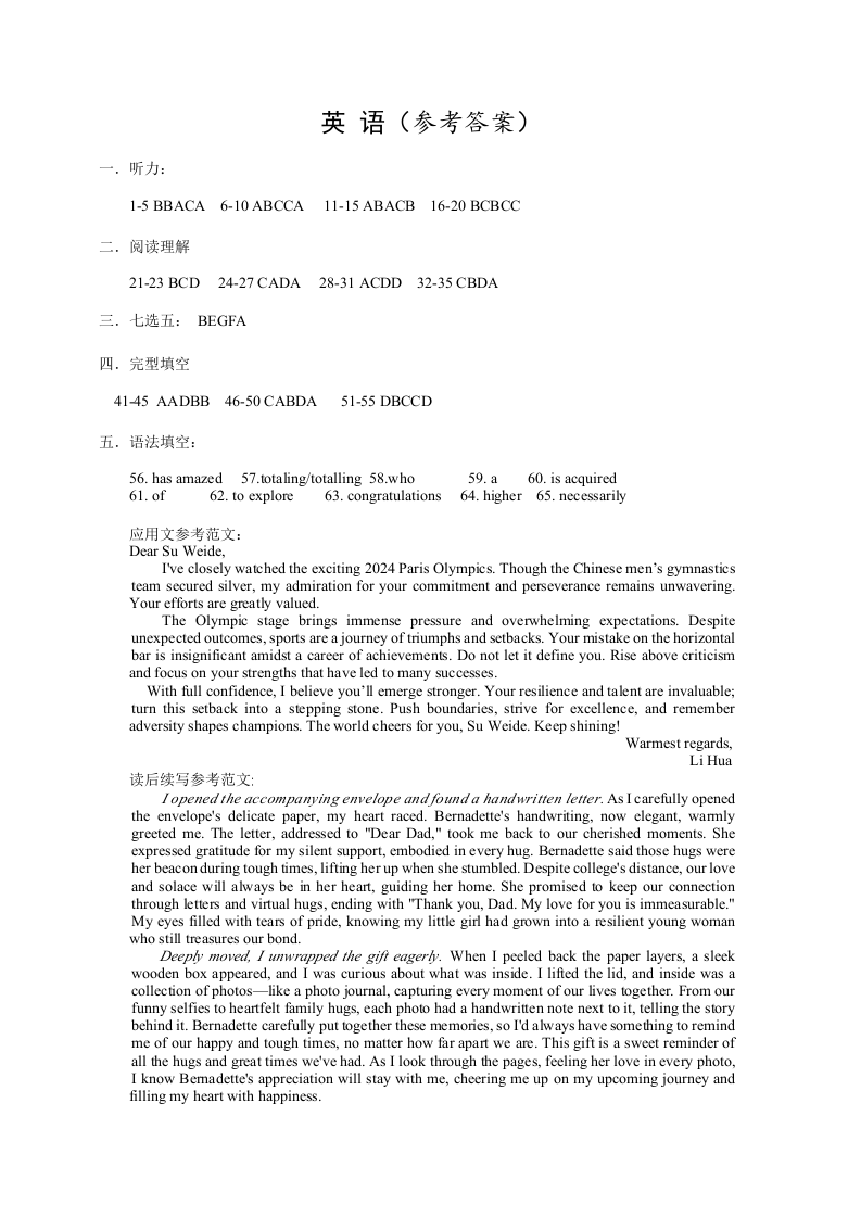 湖南省益阳市2025届高三9月教学质量检测+英语答案
