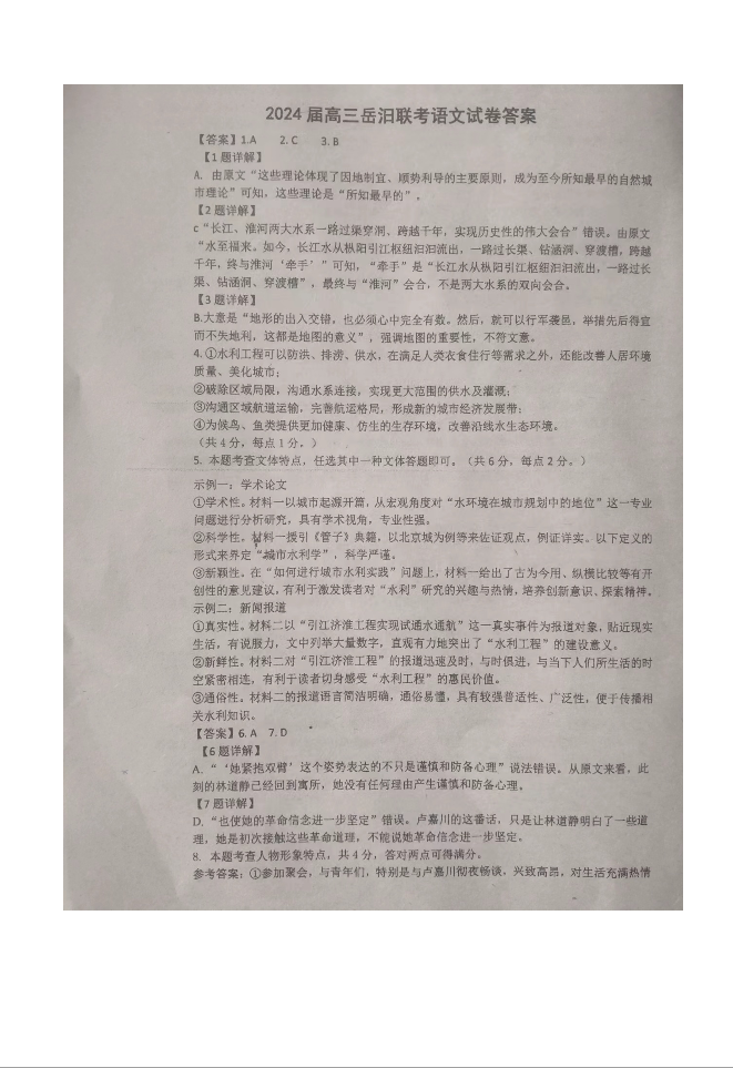 湖南省岳阳县第一中学、汨罗市第一中学2023-2024学年高三上学期11月期中联考 语文答案