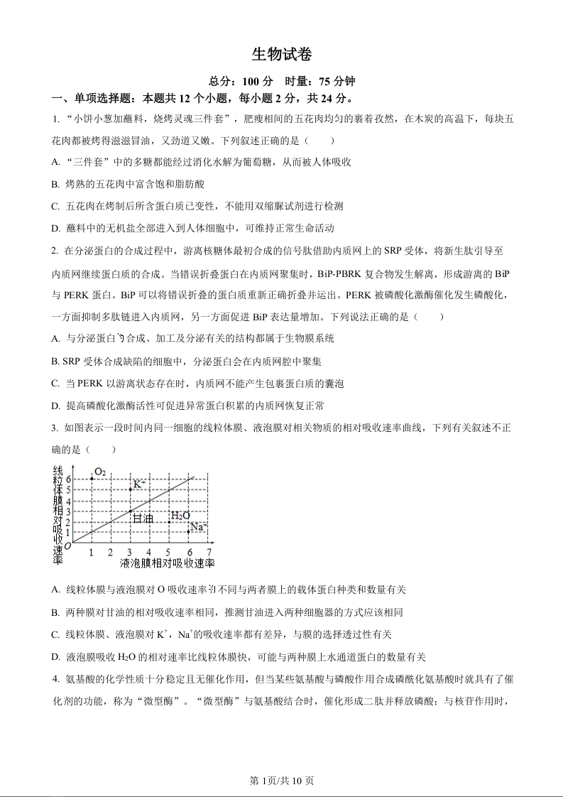 湖南省岳阳县第一中学、汨罗市第一中学2023-2024学年高三上学期11月期中联考 生物