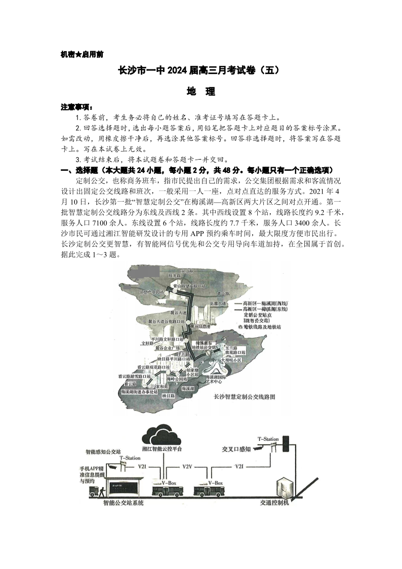 湖南省长沙市第一中学2023-2024学年高三上学期月考(五)地理