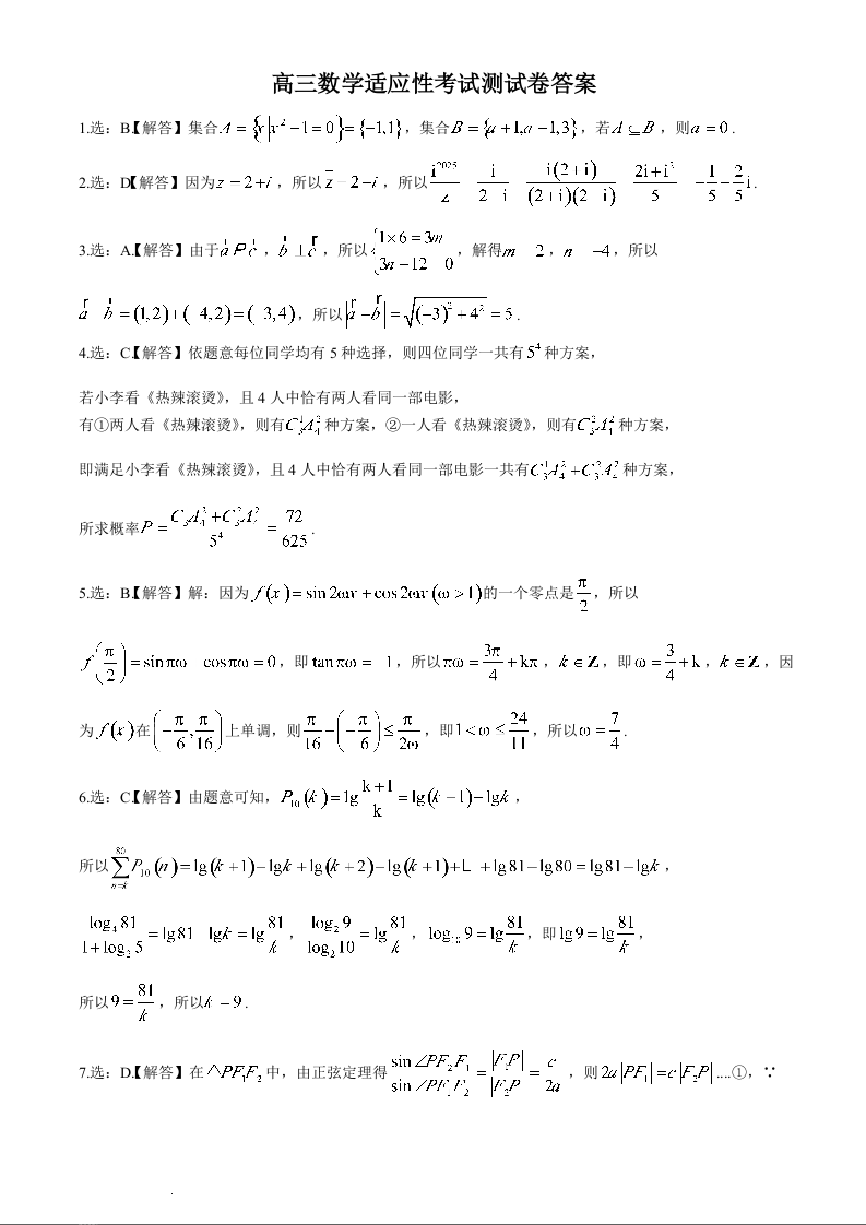 湖南省长沙市浏阳市第一中学2024年6月份高考适应性考试+数学答案
