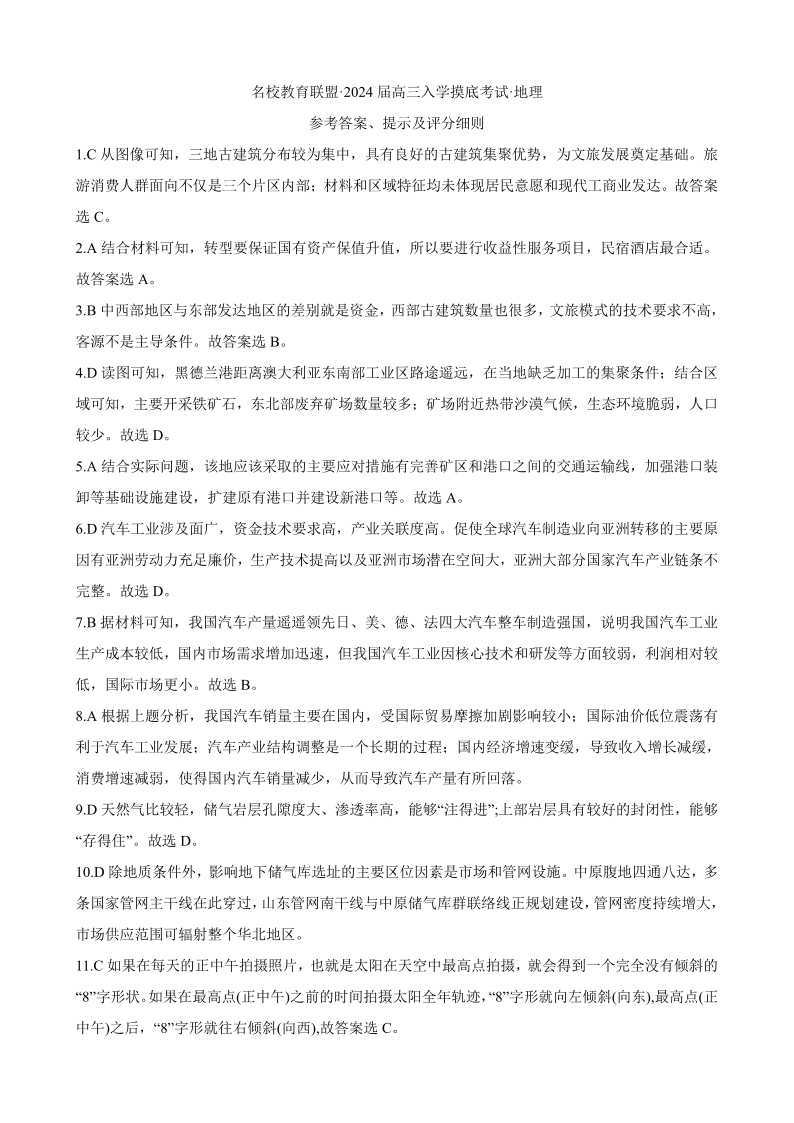 湖南天壹联盟三湘名校2023-2024学年高三下学期入学摸底考试 地理答案