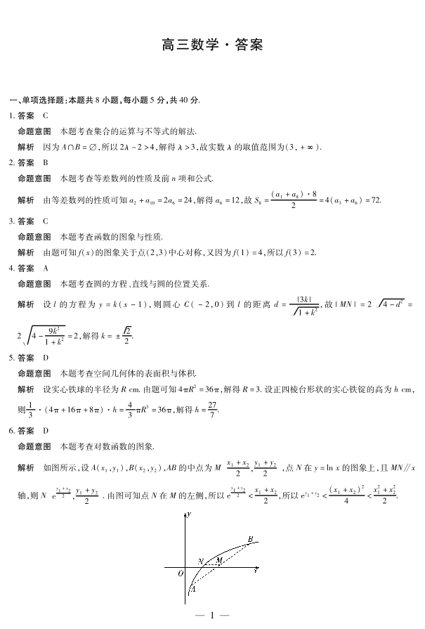 天一大联考2024-2025学年(上)湖南高三一联+数学答案