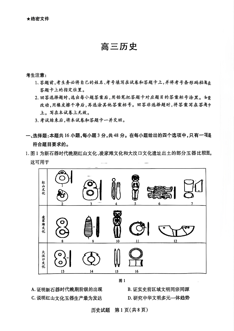 天一大联考2024-2025学年(上)湖南高三一联+历史