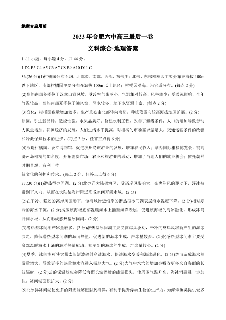 2023届安徽省合肥市第六中学高三最后一卷 文综答案