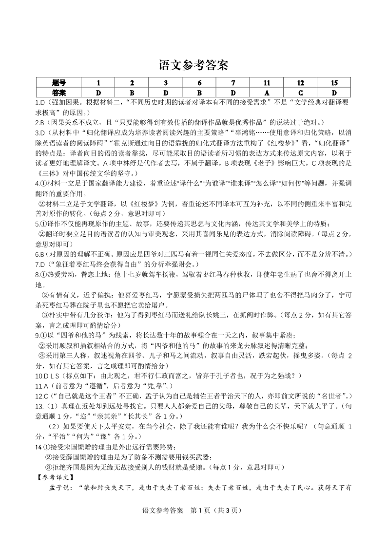 2023届安徽省皖江名校联盟高三最后一卷 语文答案