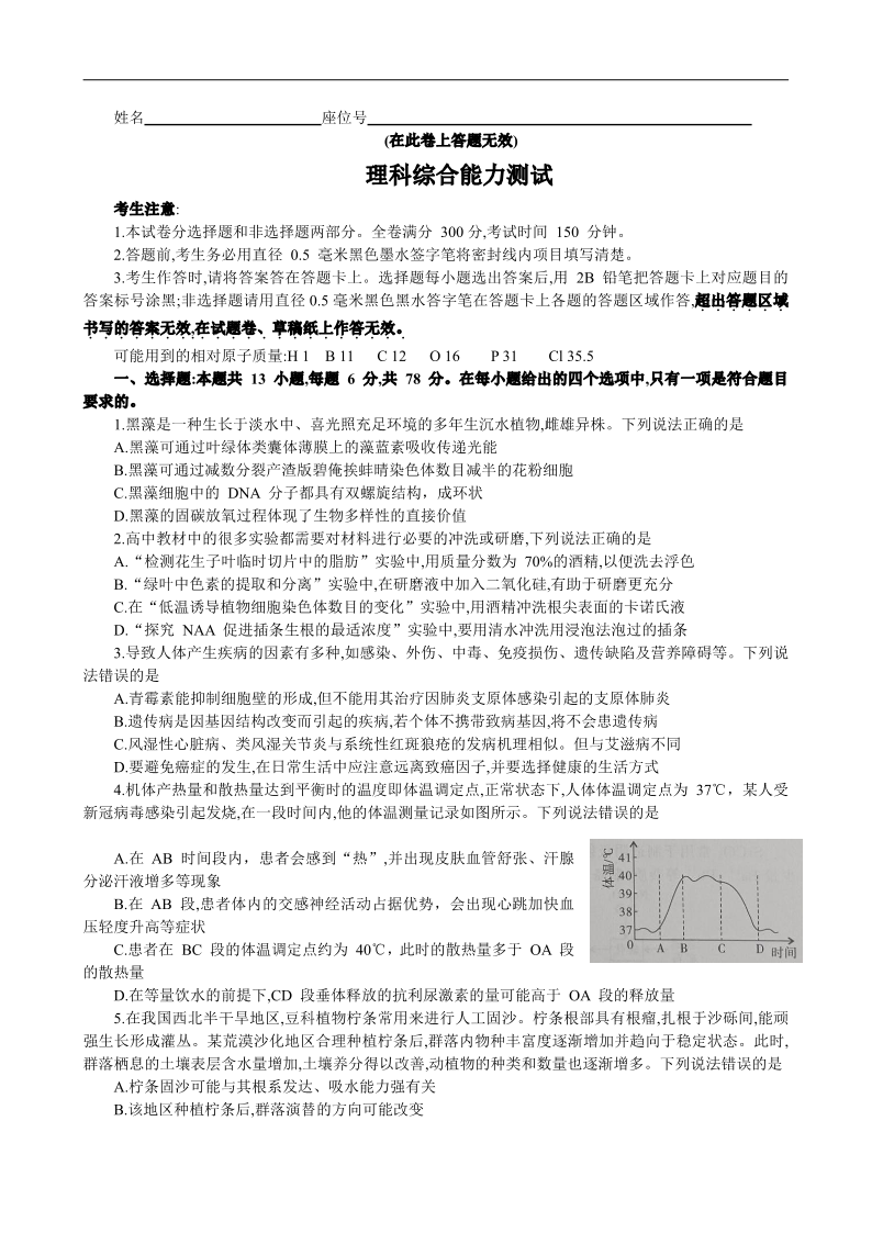 2023届安徽省皖江名校联盟高三最后一卷 理综