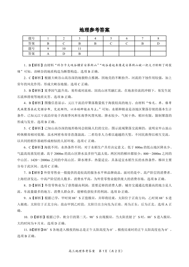 2023届安徽省皖江名校联盟高三最后一卷 文综地理答案