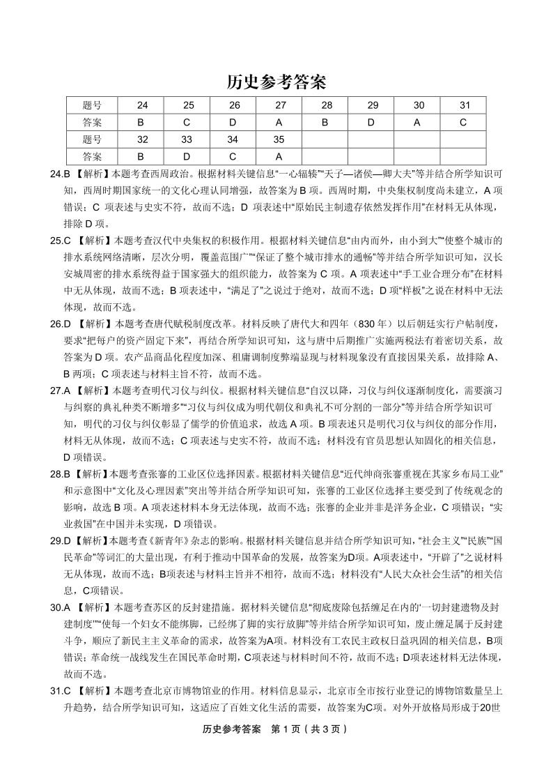 2023届安徽省皖江名校联盟高三最后一卷 文综历史答案