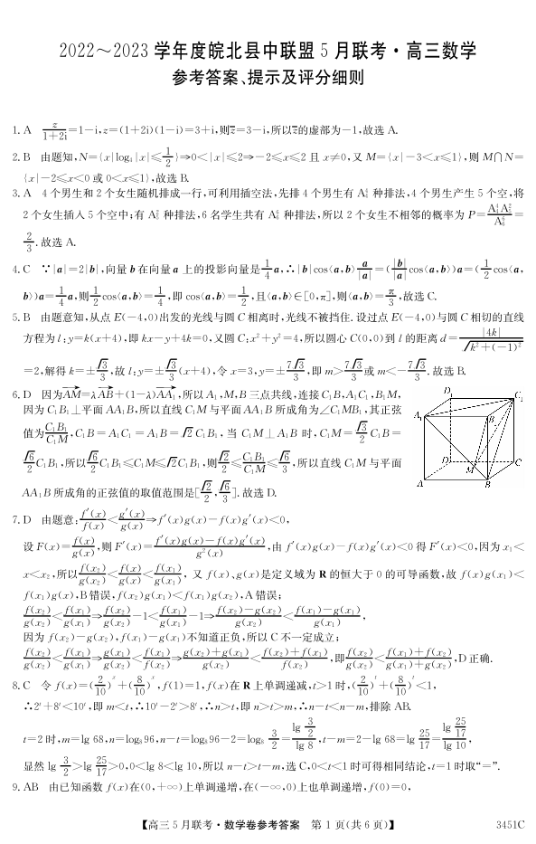 安徽省2022-2023学年度皖北县中联盟5月联考 数学答案