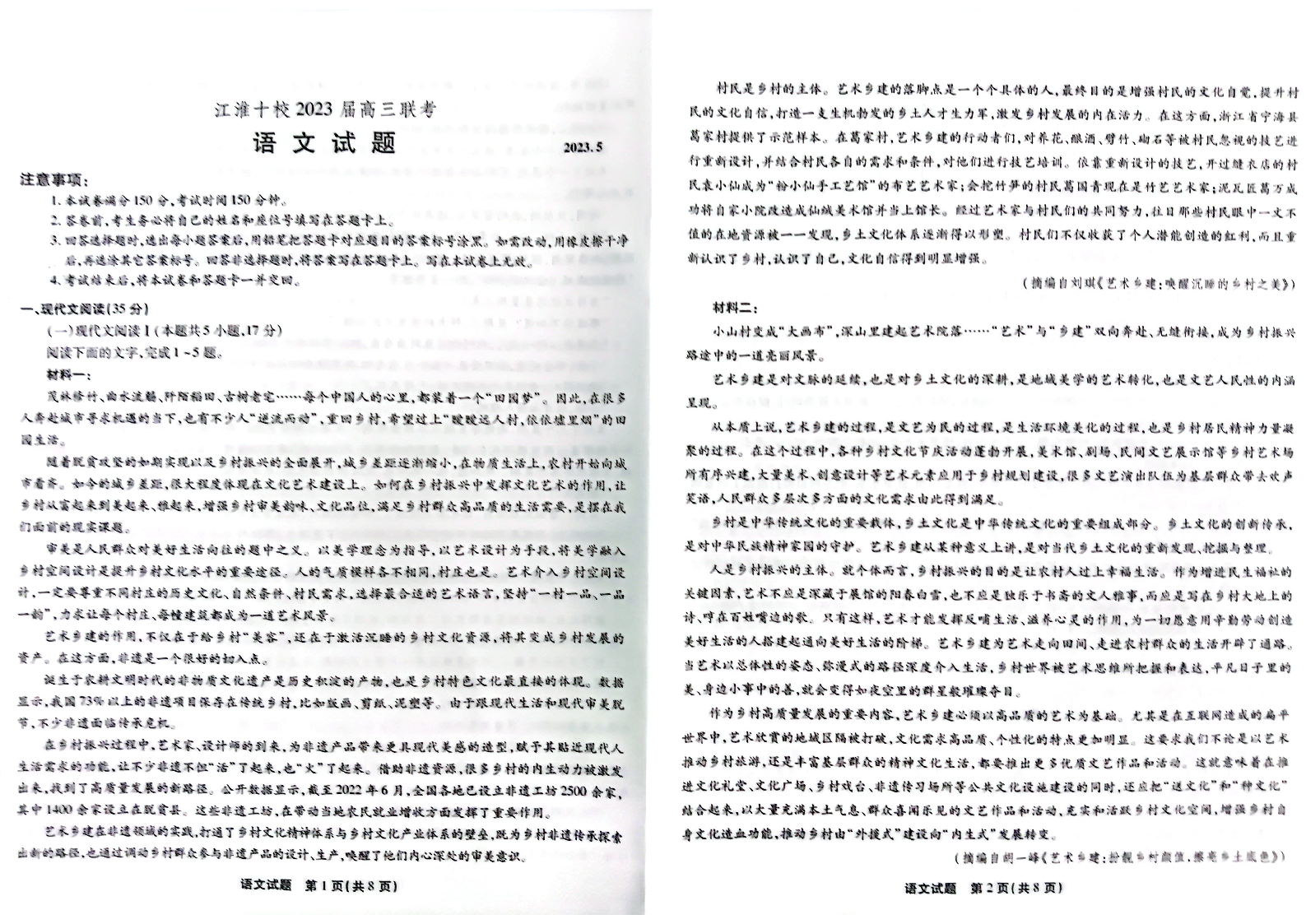 2023届安徽省江淮十校高三第四次联考 语文