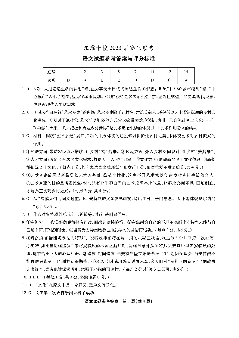 2023届安徽省江淮十校高三第四次联考 语文答案