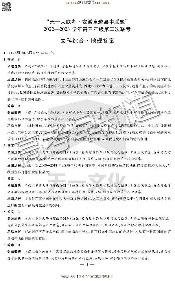 2023安徽卓越县中联盟第二次联考 文综地理答案