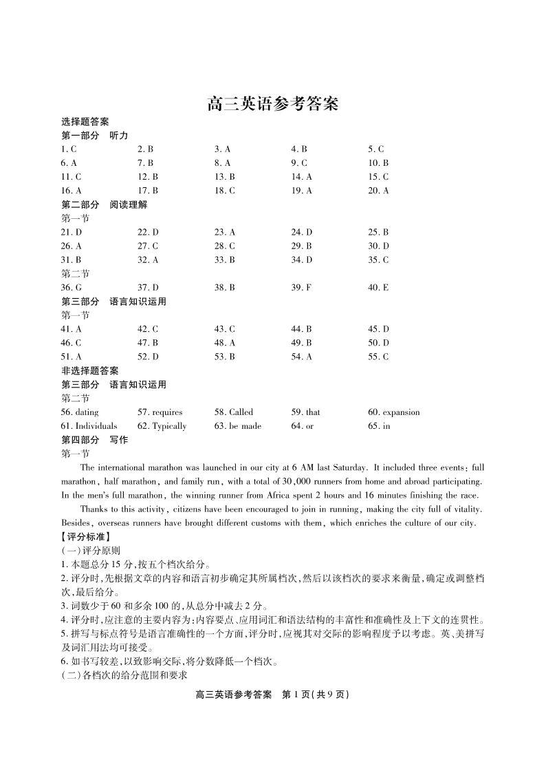 安徽省临泉一中2022-2023学年度高三下学期5月鼎尖教育联考 英语答案