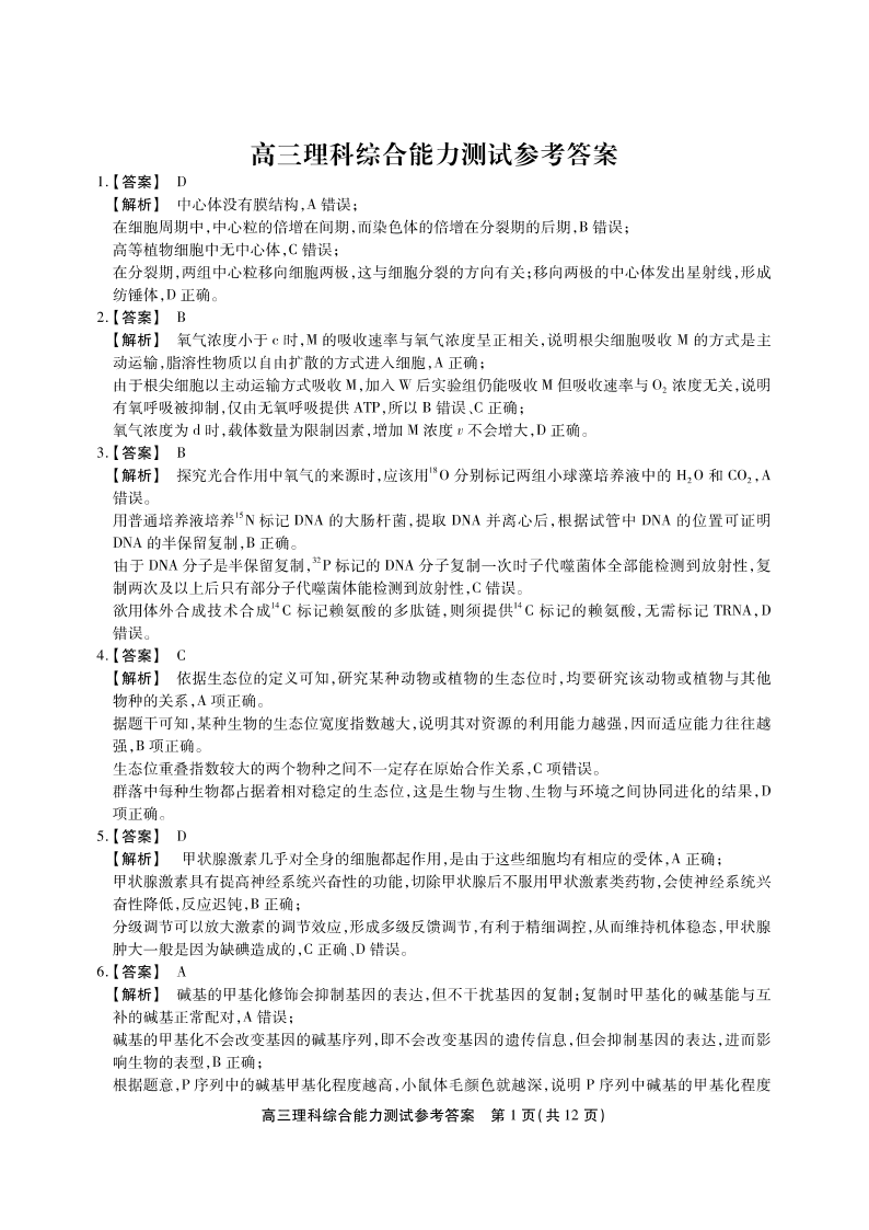 安徽省临泉一中2022-2023学年度高三下学期5月鼎尖教育联考 理综答案