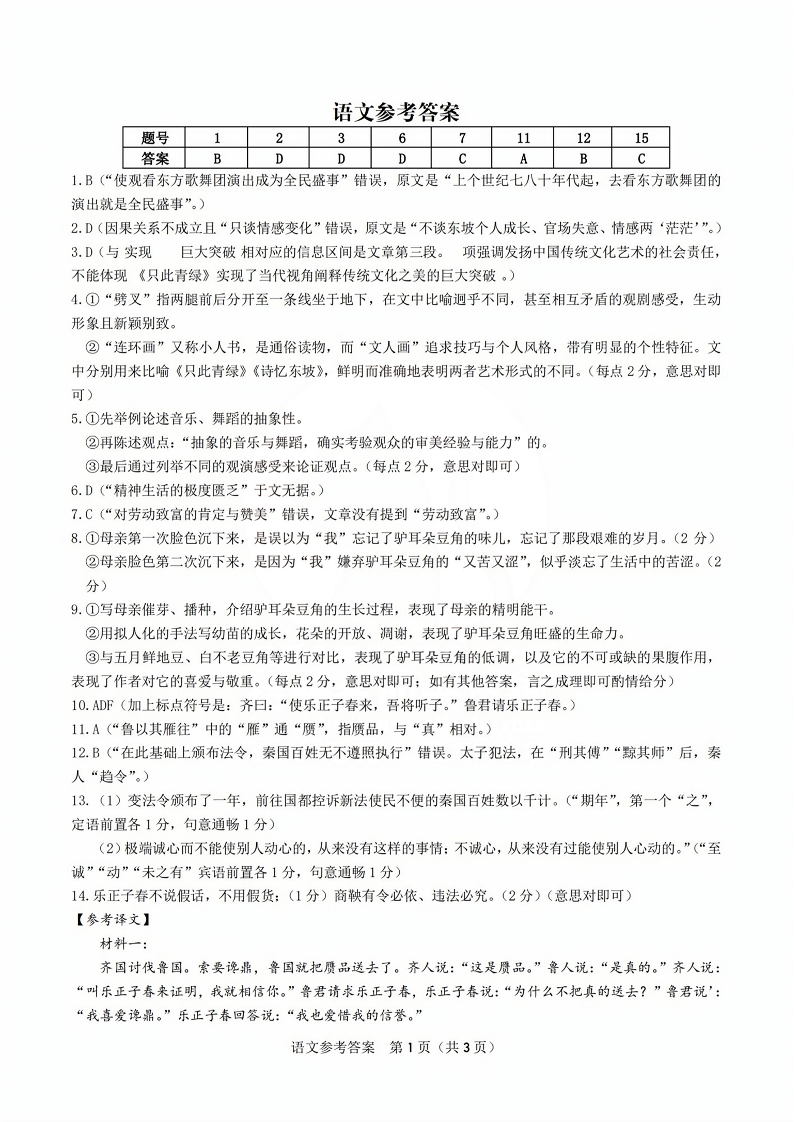 安徽皖江名校联盟2024届高三上学期10月阶段考试 语文答案