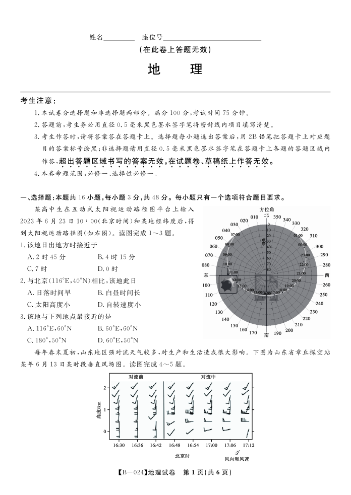 安徽皖江名校联盟2024届高三上学期10月阶段考试 地理