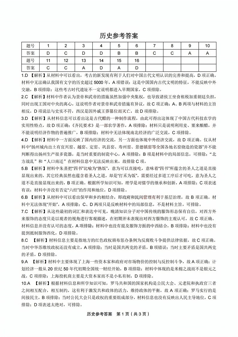 安徽皖江名校联盟2024届高三上学期10月阶段考试 历史答案