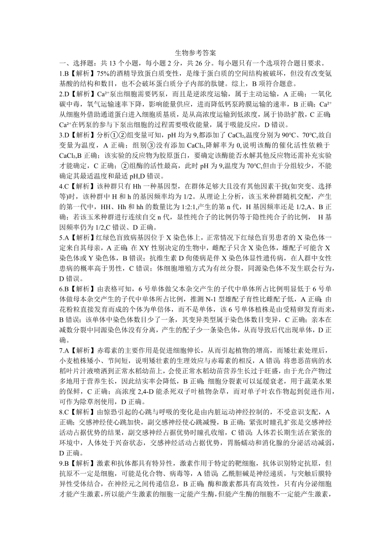 安徽省皖江名校联盟2024届高三开学摸底考试 生物答案