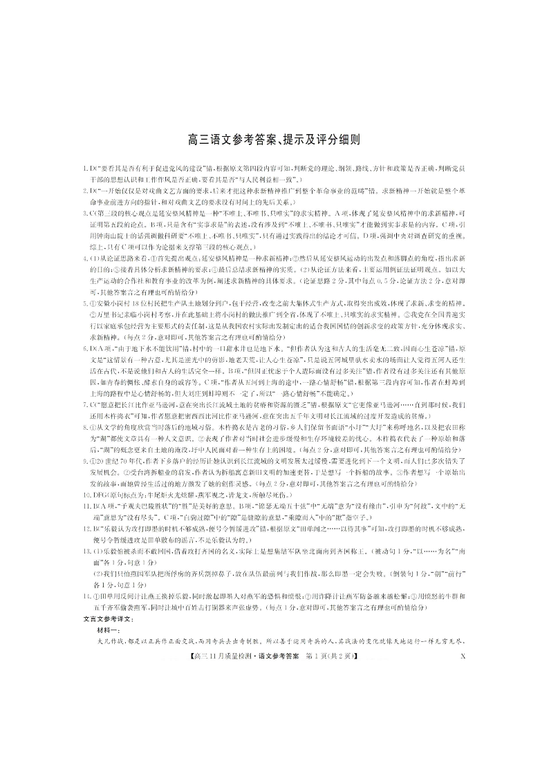安徽省九师联盟2024届高三11月质量检测 语文答案