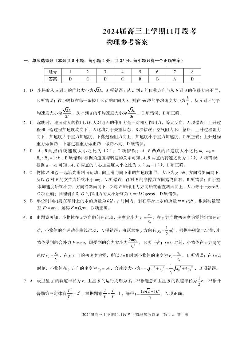 安徽省合肥六校联盟2023-2024学年高三上学期期中联考 物理答案