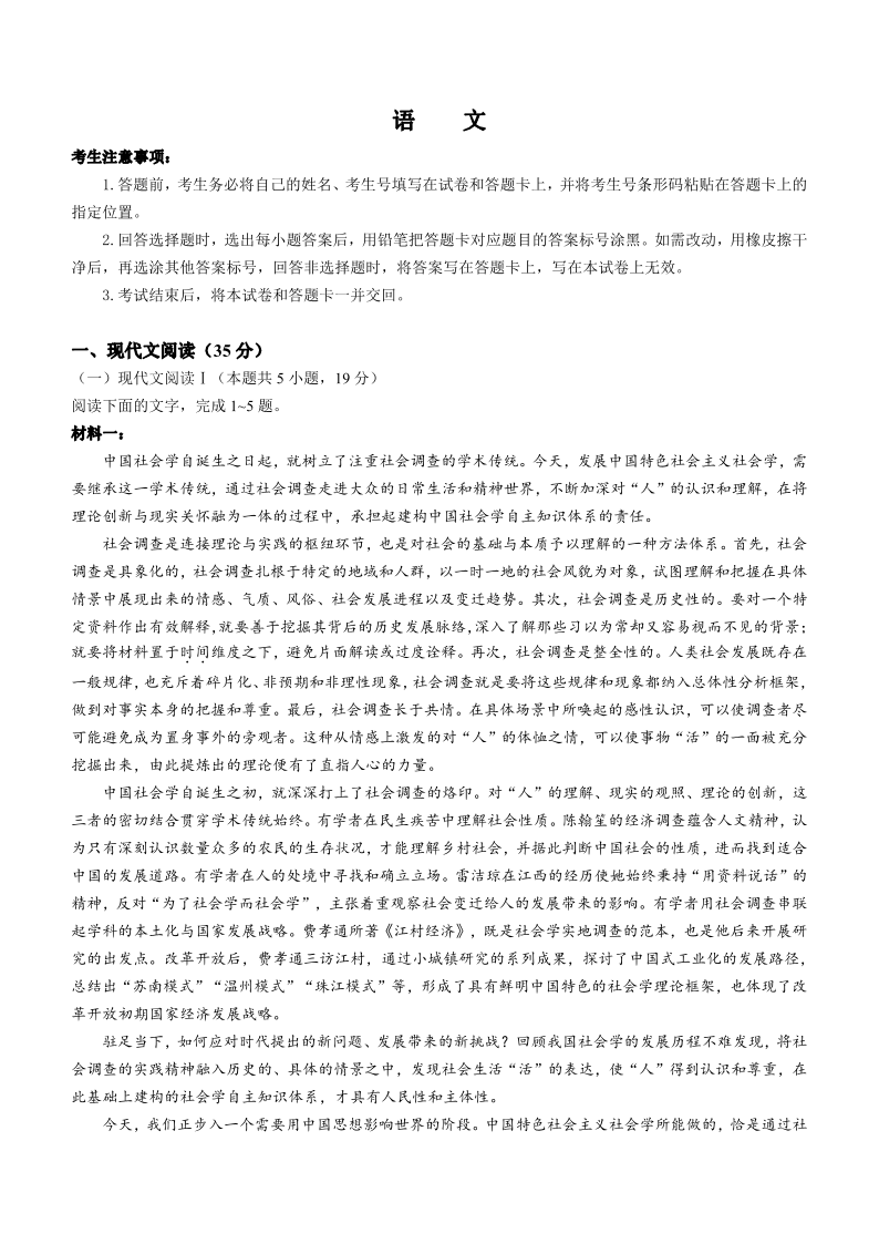 安徽省巢湖市第一中学2024届高三上学期10月月考试题 语文