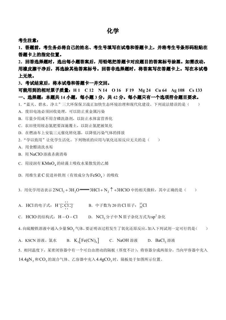 安徽省巢湖市第一中学2024届高三上学期10月月考试题 化学