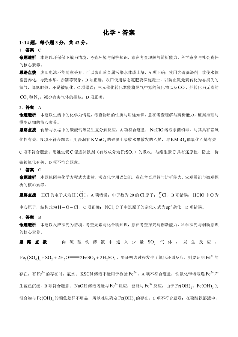 安徽省巢湖市第一中学2024届高三上学期10月月考试题 化学答案