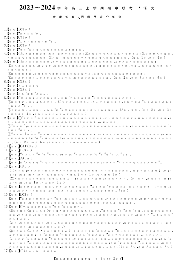 23年11月五校联盟-语文答案