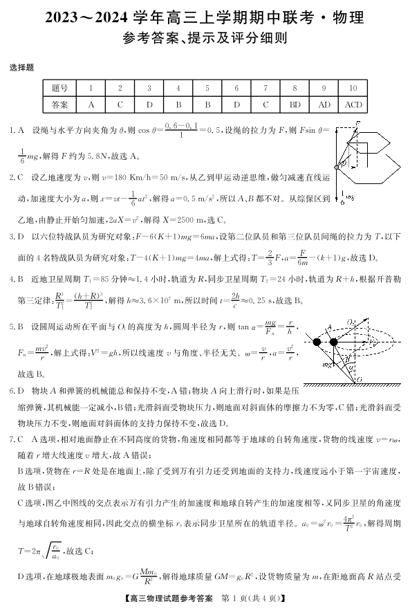 23年11月五校联盟-物理答案