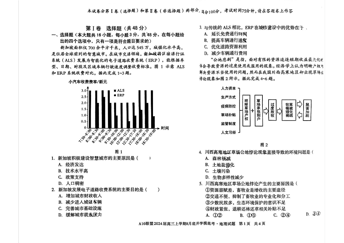 安徽省A10联盟2024届高三上学期8月开学摸底考试 地理