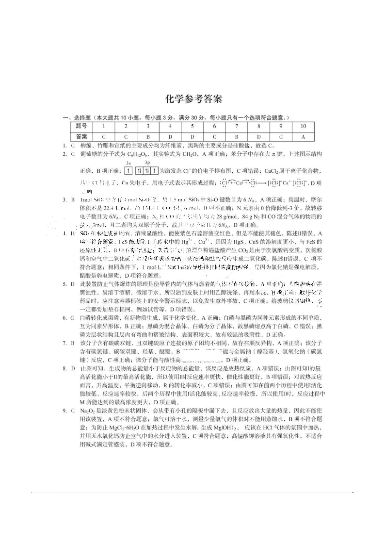 安徽省A10联盟2024届高三上学期8月开学摸底考试 化学答案