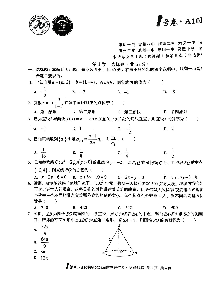 安徽省A10+联盟2023-2024学年高三下学期开年考 数学