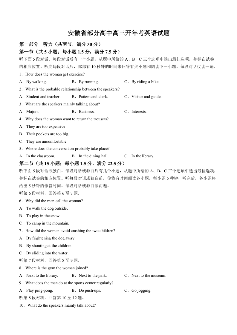 安徽省A10+联盟2023-2024学年高三下学期开年考 英语