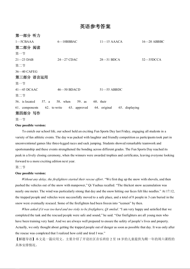 安徽省A10+联盟2023-2024学年高三下学期开年考 英语答案